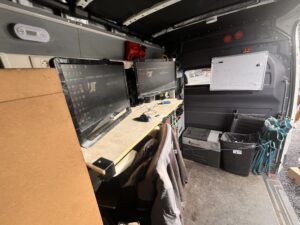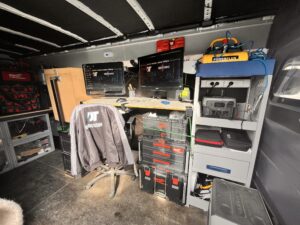 Jâai embarquĂ© un espace de travail complet : imprimante, bureau, espace de programmation⊠IdĂ©al pour gĂ©rer les urgences techniques, lancer des diagnostics ou avancer sur des projets informatiques sans perdre de temps.