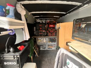 Fort de cette expĂ©rience, je propose aussi dâamĂ©nager votre utilitaire en atelier mobile sur-mesure. ĂlectricitĂ©, bureau, rangements, Ă©quipements spĂ©cifiques : on personnalise ensemble pour crĂ©er un vĂ©hicule qui bosse autant que vous.